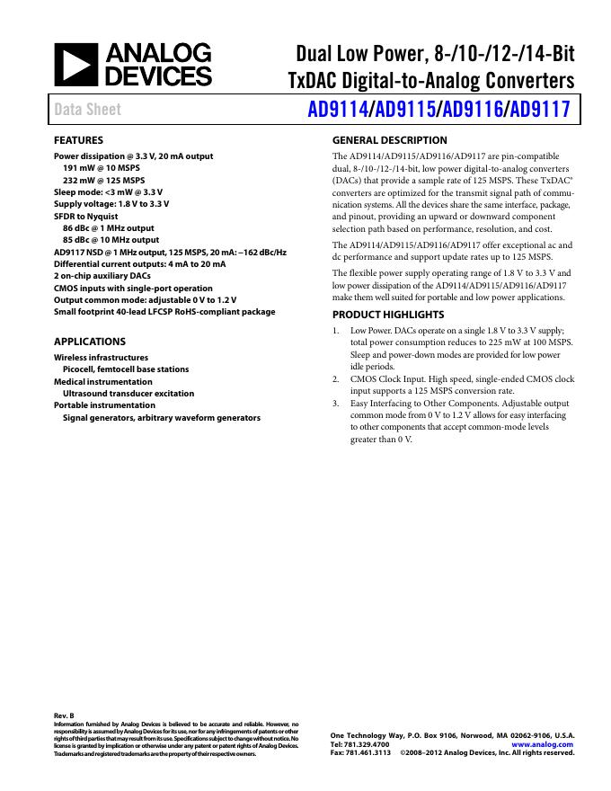 ANALOG DEVICES AD9114 英文产品数据手册.pdf