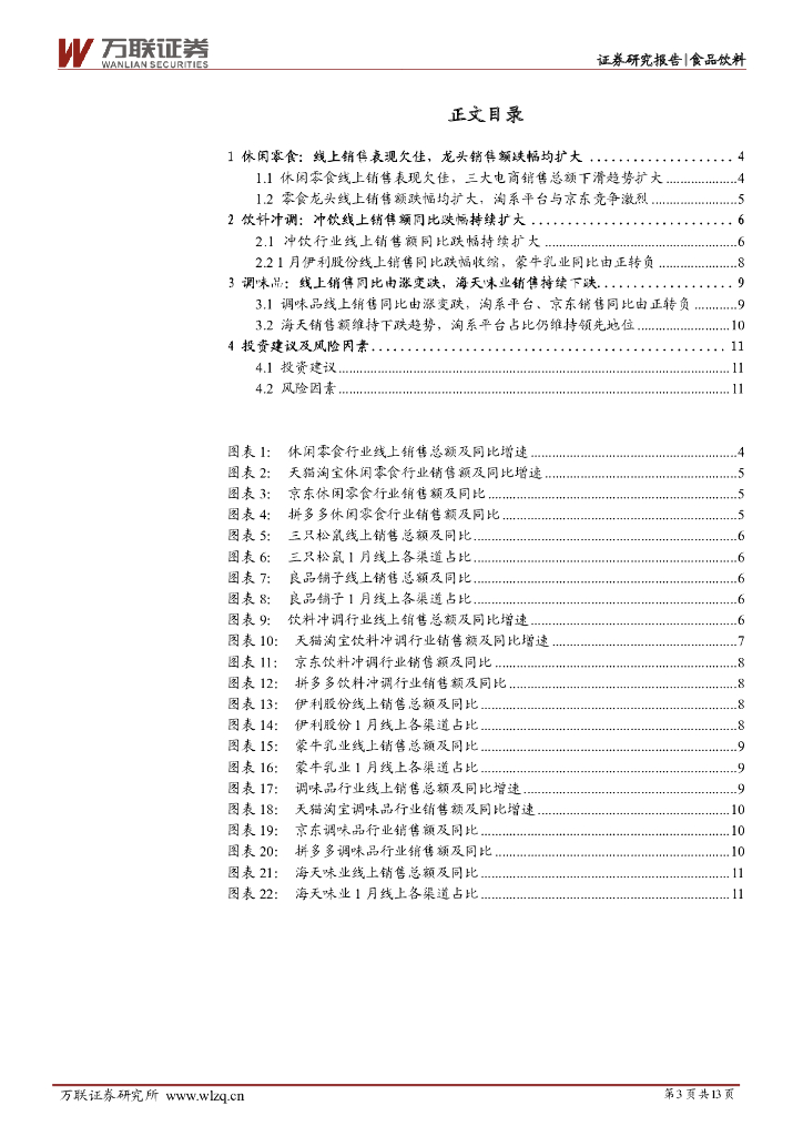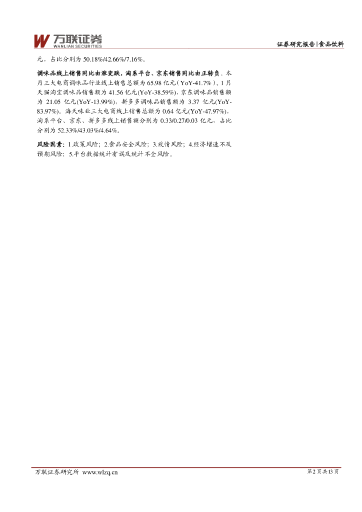 万联证券:食品饮料行业跟踪报告:调味品线上增速转负,零食及冲饮延续跌势.pdf