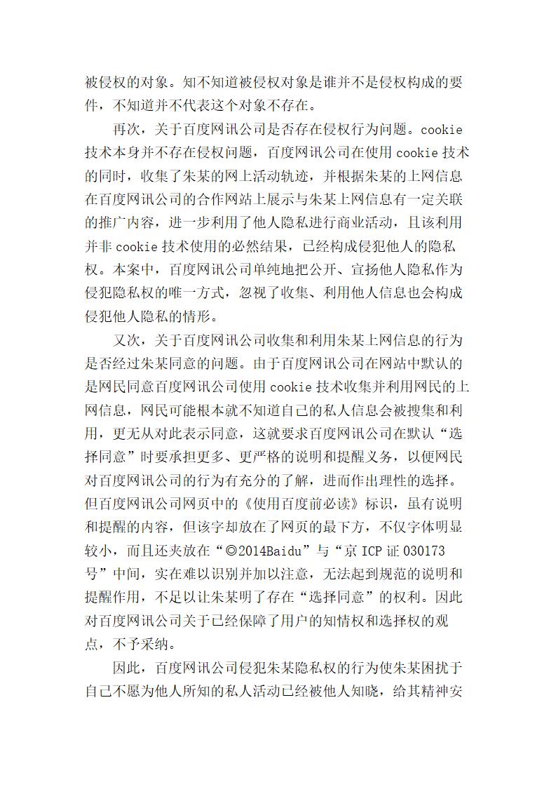 百度与朱烨隐私权纠纷:Cookies大数据分析的信息归谁所有?.pdf