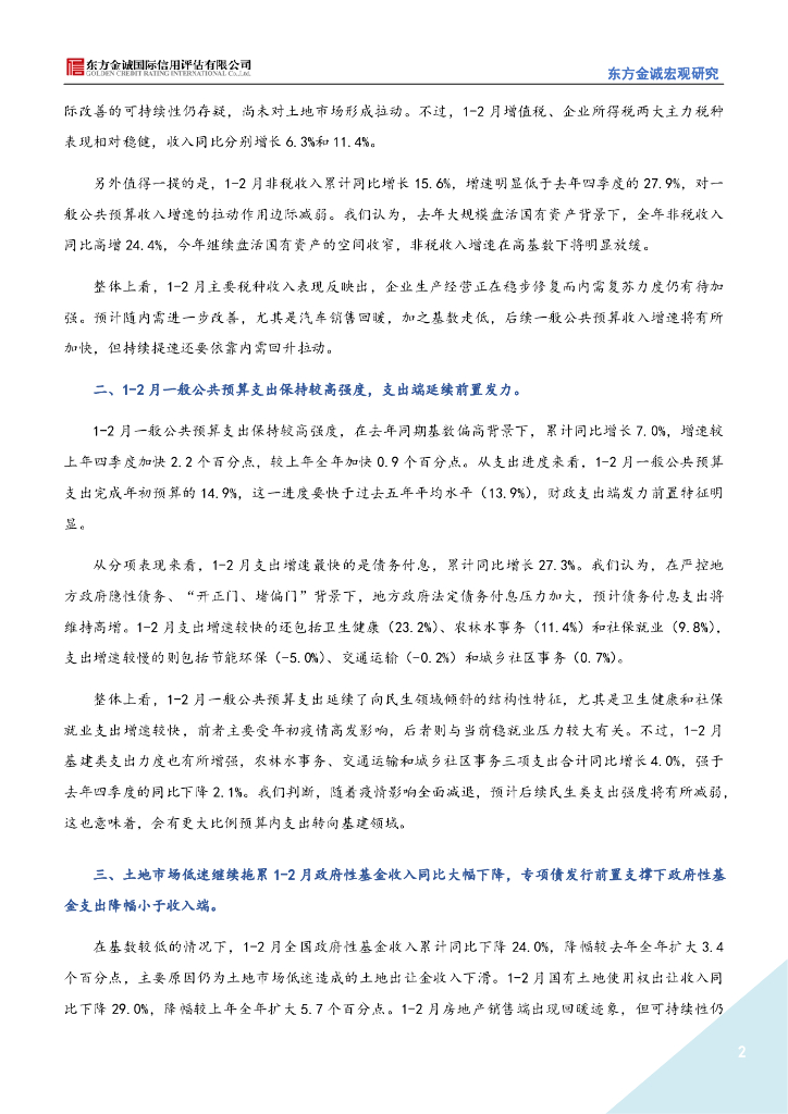 东方金诚:年初财政收入表现不佳,支出保持较高强度,收支矛盾仍然突出-2023年1-2月财政数据点评.pdf
