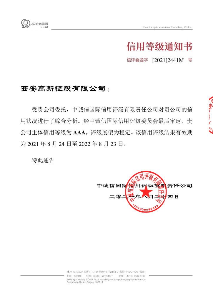 中诚信:2021年度西安高新控股有限公司信用评级报告.pdf