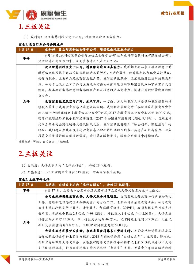 广证恒生证券研究所:教育行业周报:海亮教育FY19营收14.99亿元(+28.20%) ,全国校外线上培训管理平台上线.pdf