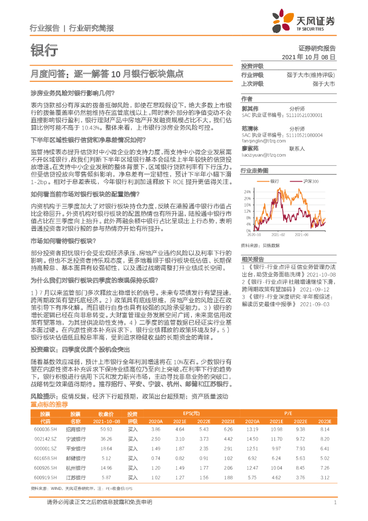 天风证券:银行月度问答:逐一解答10月银行板块焦点.pdf