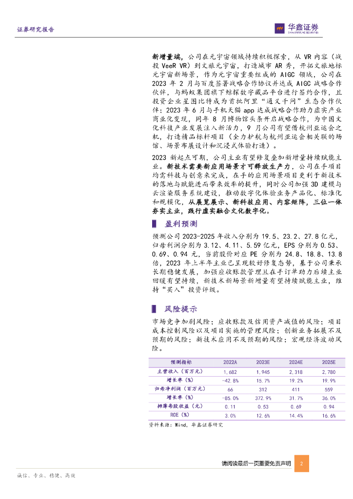 华鑫证券:风语筑(603466)-公司事件点评报告:主业修复 看体验经济复苏助推获单能力.pdf