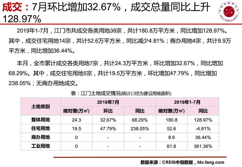 中国指数研究院:江门房地产市场快报(2019年7月).pdf