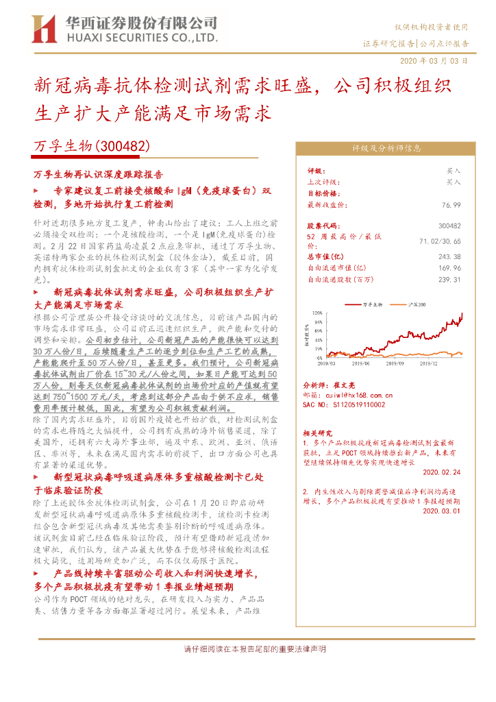 华西证券:万孚生物(300482)-新冠病毒抗体检测试剂需求旺盛,公司积极组织生产扩大产能满足市场需求.pdf