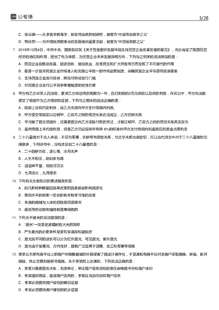 2020年福建公务员考试行测真题及答案.pdf