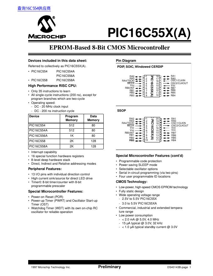 MICROCHIP PIC16C55X(A) EPROM-Based 8-Bit CMOS Microcontroller 数据手册.pdf