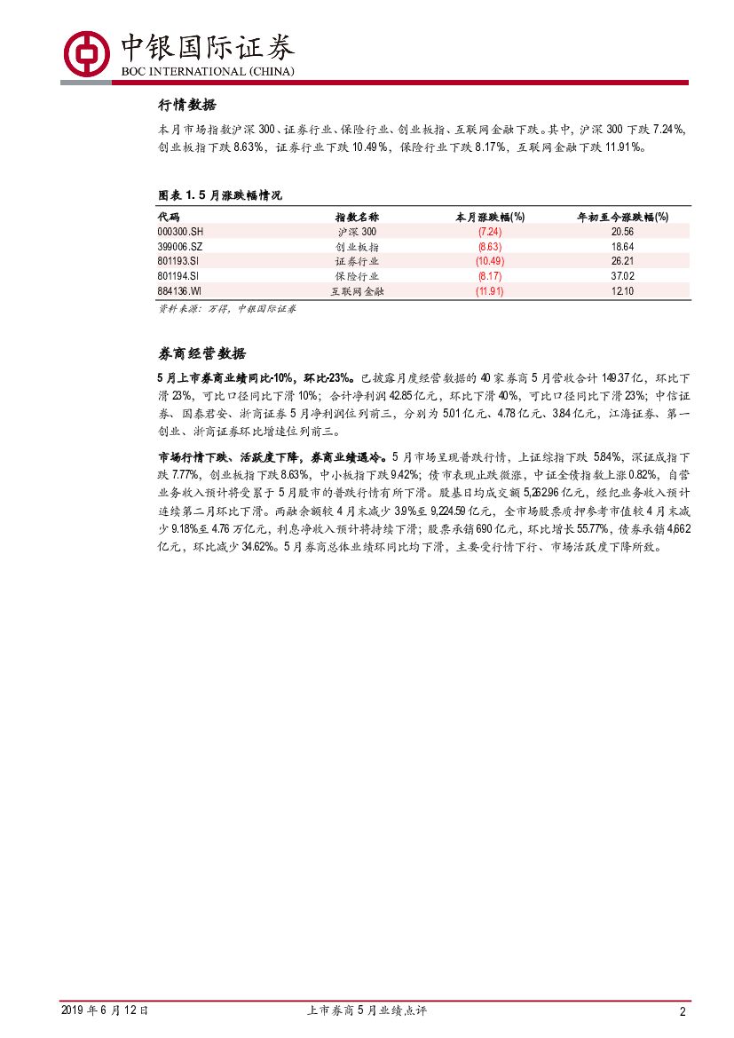 中银国际:上市券商5月业绩点评:市场普跌、活跃度下降,业绩环同比均明显下滑.pdf