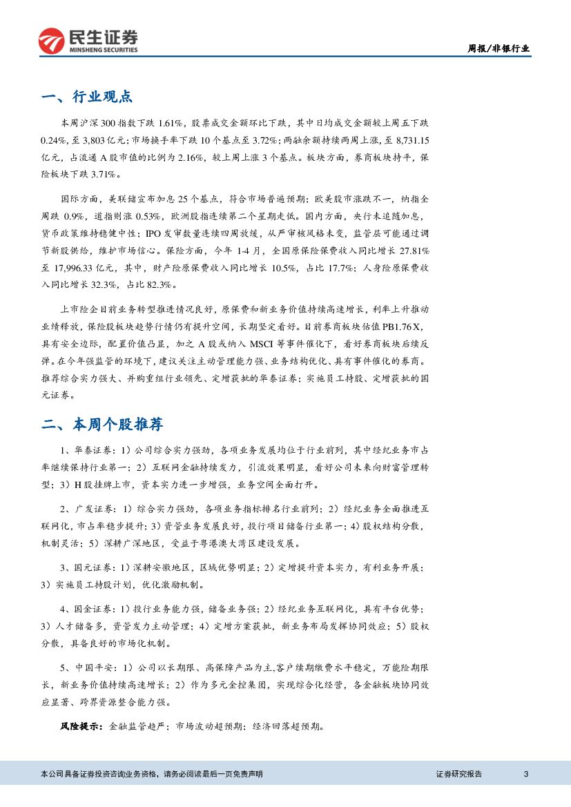 民生证券:非银行业周报:券商配置价值凸显,看好保险板块价值提升.pdf