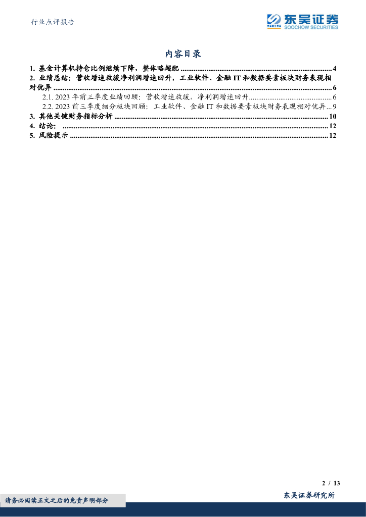 东吴证券:计算机行业三季度业绩综述:营收增速放缓利润增速提升,工业软件、数据要素财务表现较好.pdf