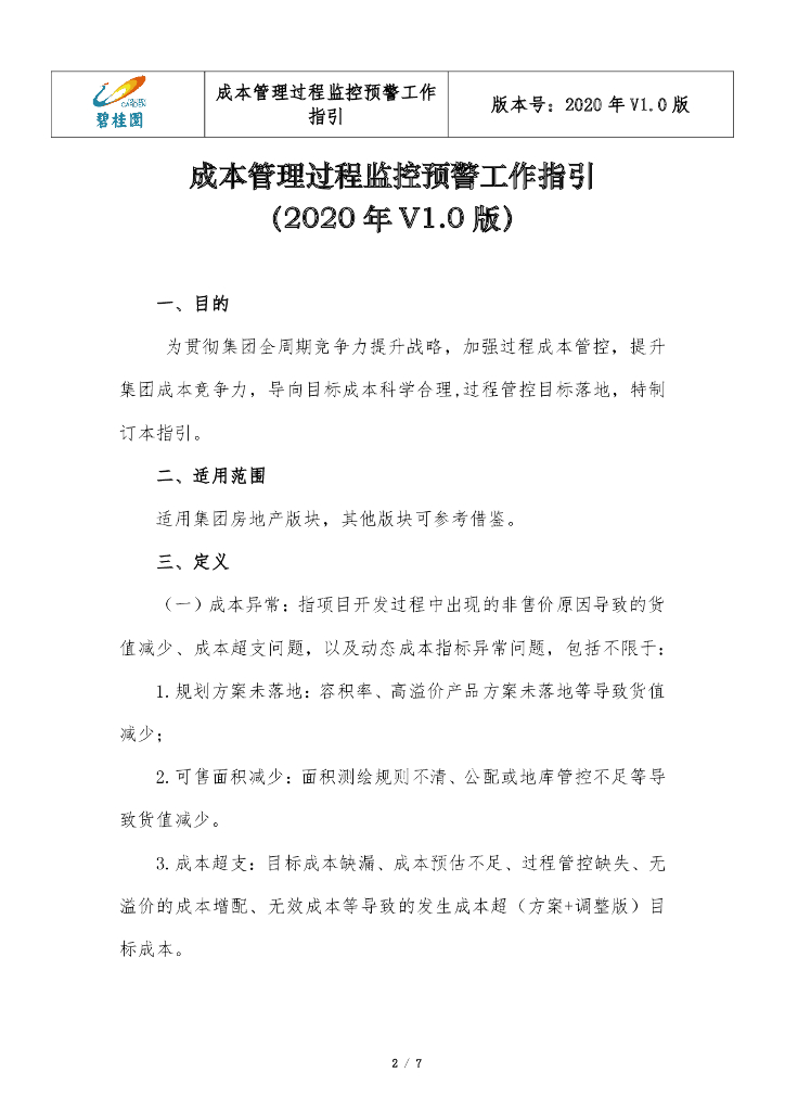 知名房企成本管理过程监控预警工作指引.pdf