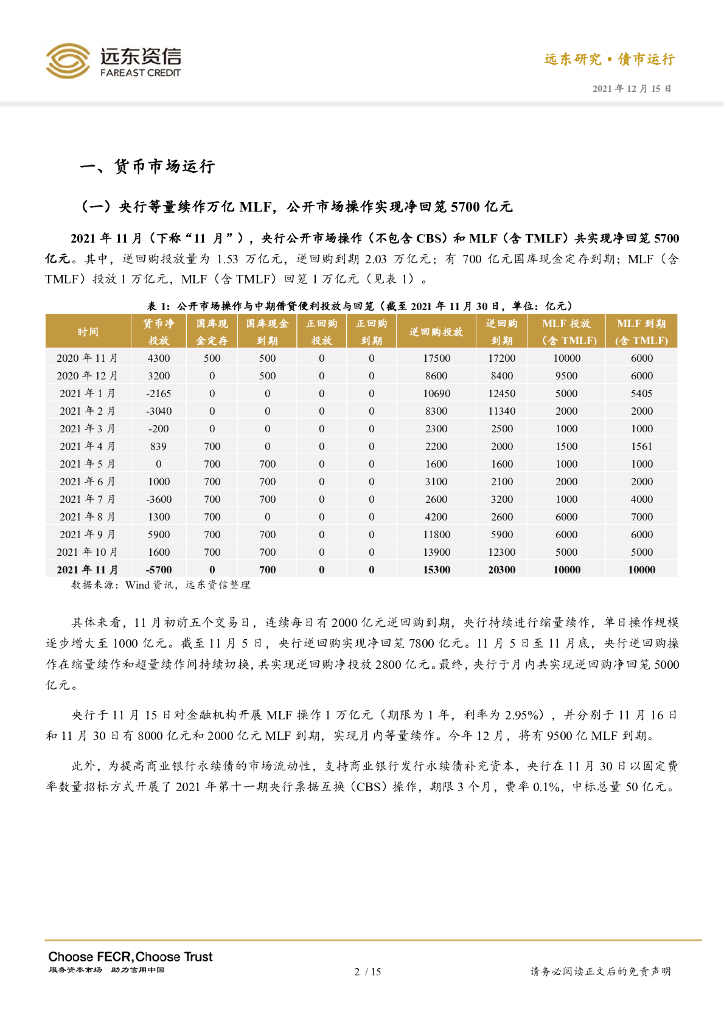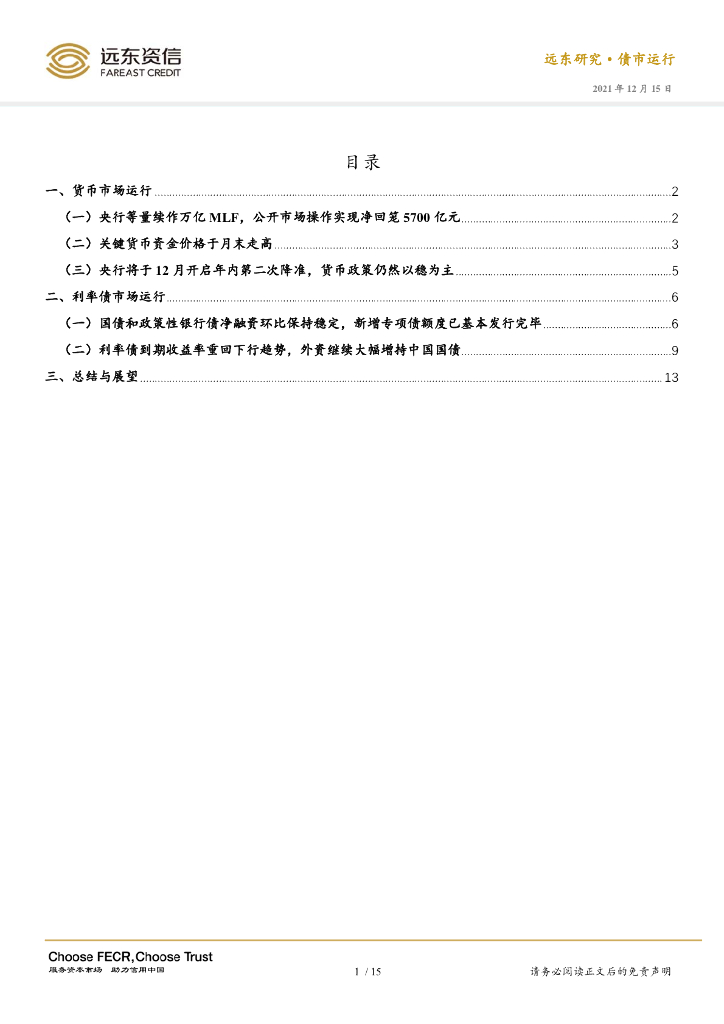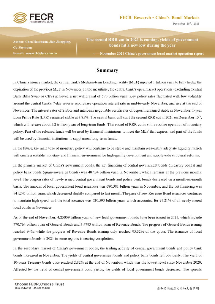 远东资信:2021年11月利率债市场运行报告:年内第二次降准将落地,利率债收益率创年内新低.pdf