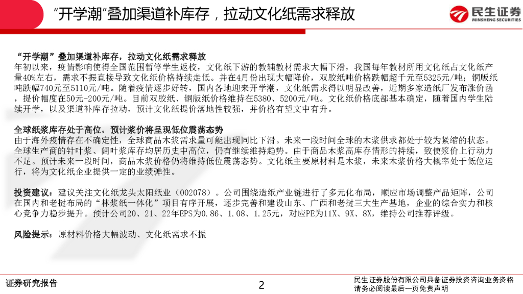 民生证券:轻工行业点评报告:“开学潮”叠加渠道补库存,拉动文化纸需求释放.pdf