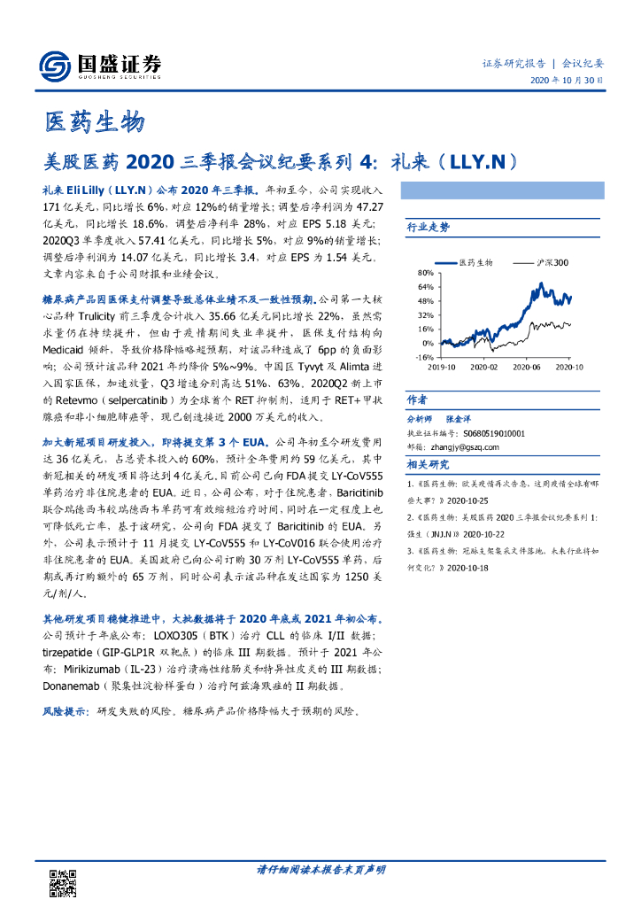 国盛证券:美股医药2020三季报会议纪要系列4:礼来(LLY.N).pdf
