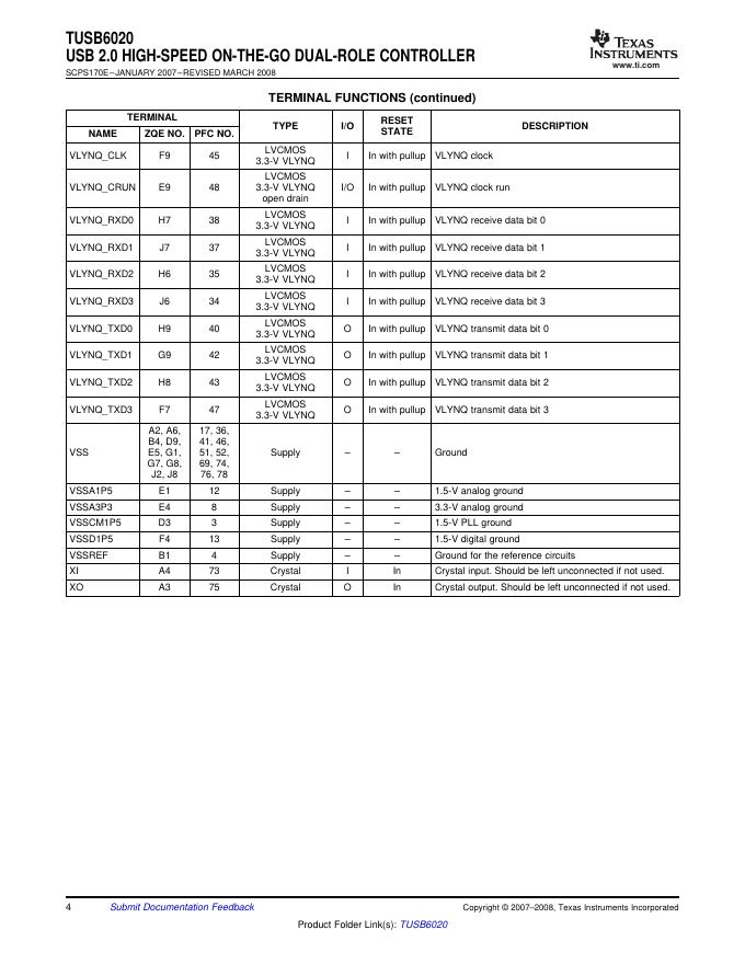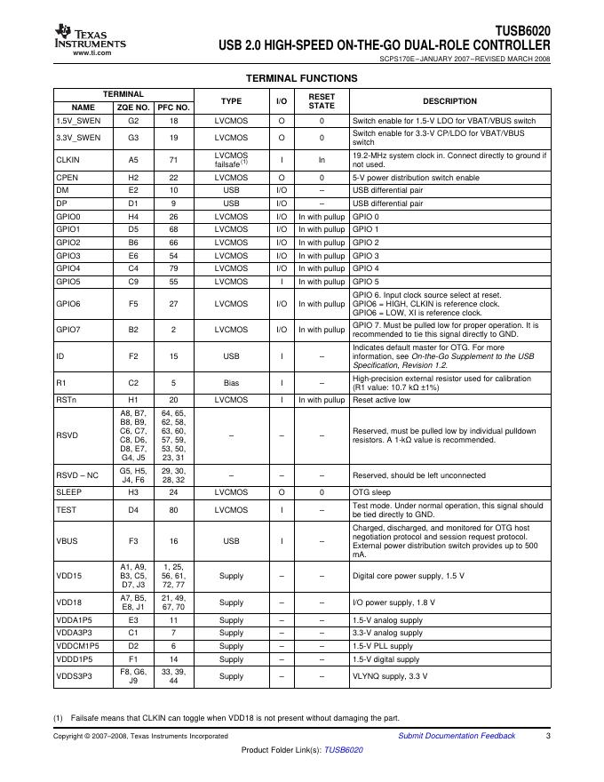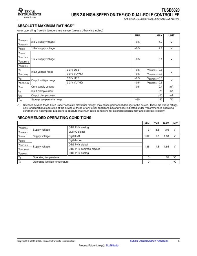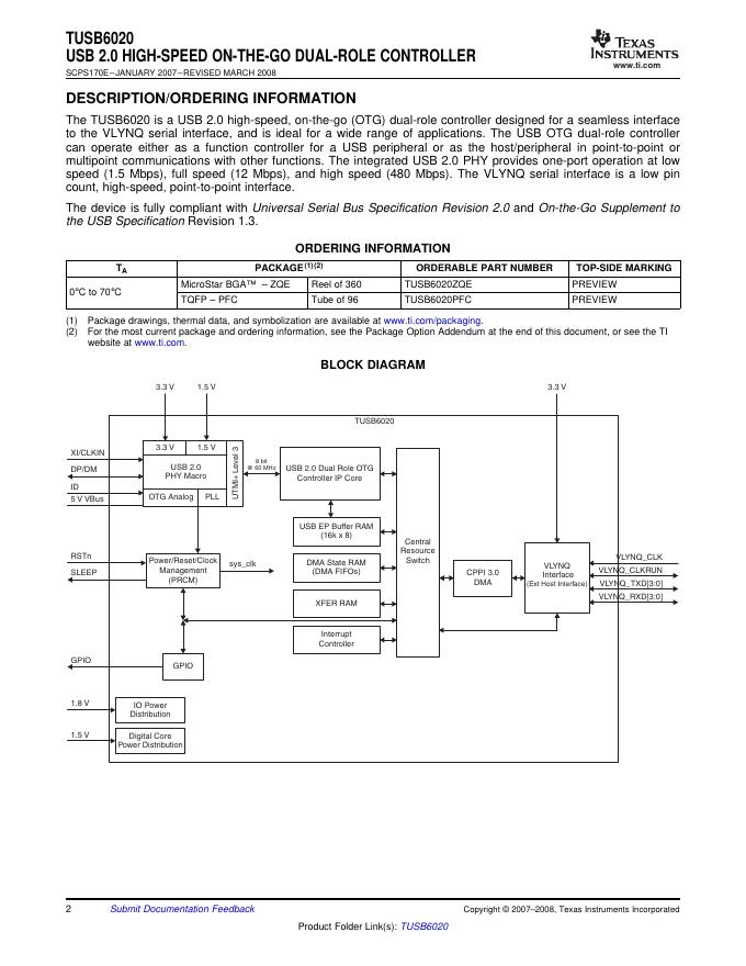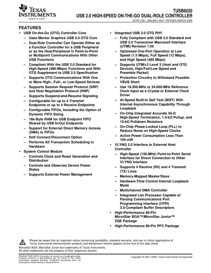 TEXAS INSTRUMENTS TUSB6020 USB 2.0 HIGH-SPEED ON-THE-GO DUAL-ROLE CONTROLLER 数据手册.pdf