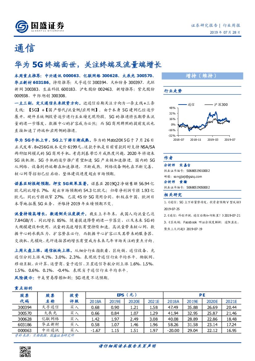 国盛证券:通信行业周报:华为5G终端面世,关注终端及流量端增长.pdf
