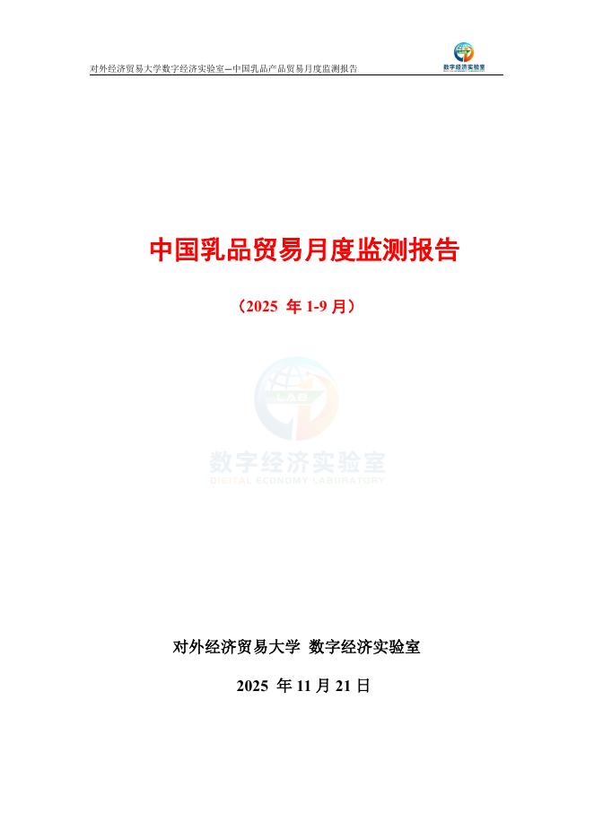 对外经济贸易大学:中国乳品贸易月度监测报告(2025年1-9月).pdf