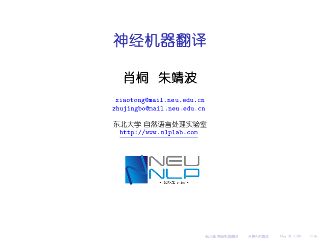 东北大学自然语言处理实验室:神经机器翻译.pdf