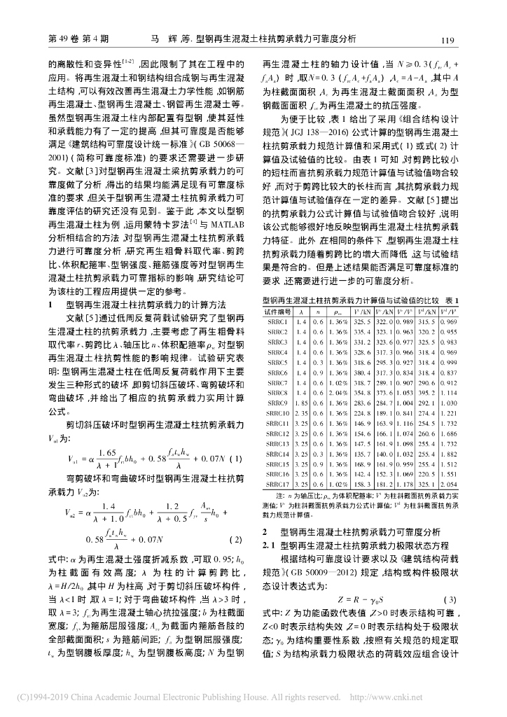 型钢再生混凝土柱抗剪承载力可靠度分析.pdf