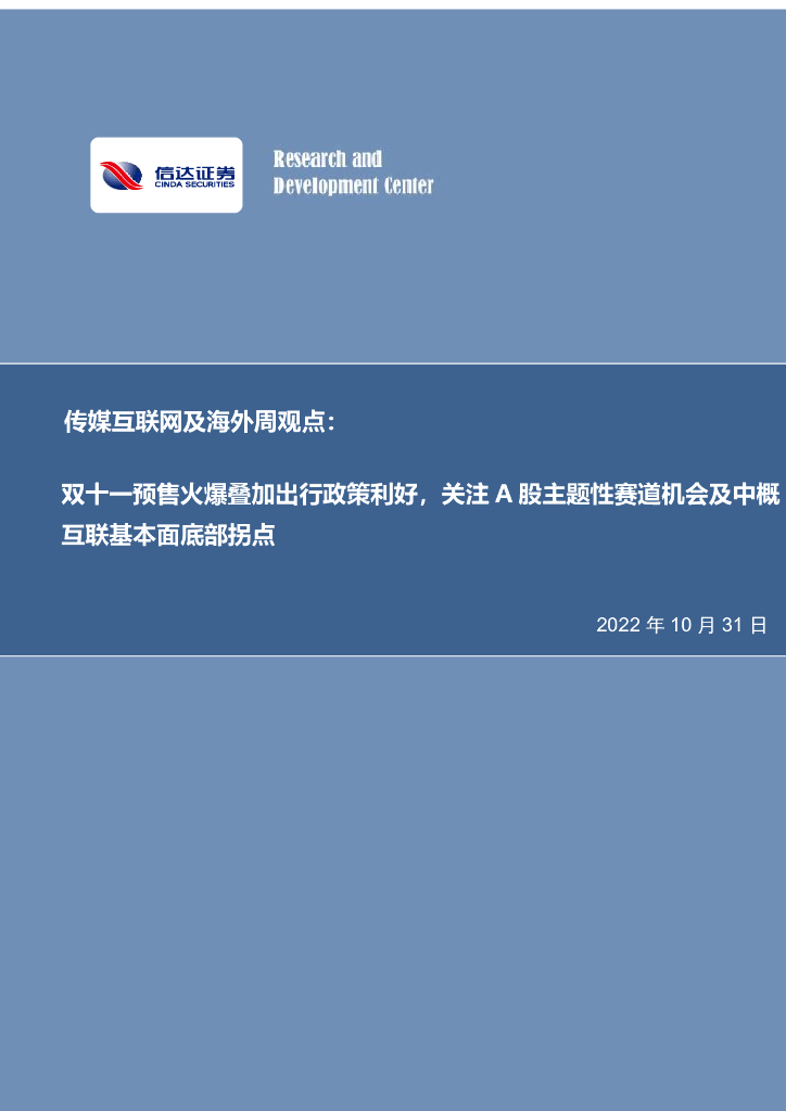 信达证券:传媒互联网及海外周观点:双十一预售火爆叠加出行政策利好,关注A股主题性赛道机会及中概互联基本面底部拐点.pdf