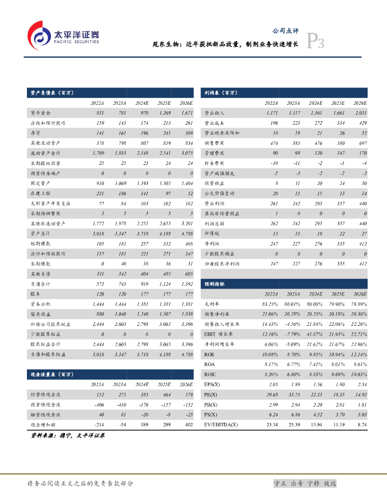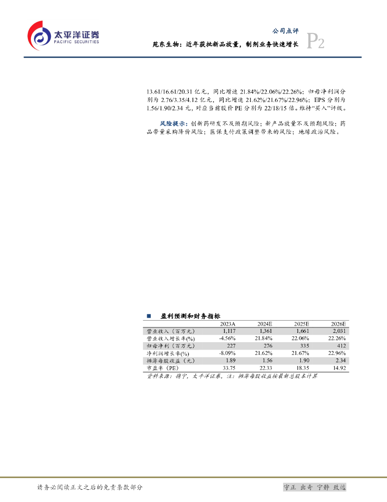 太平洋证券:苑东生物:近年获批新品放量,制剂业务快速增长.pdf