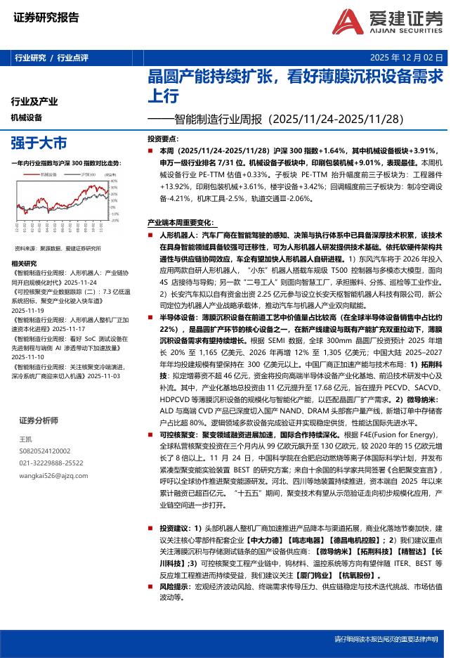 爱建证券:智能制造行业周报:晶圆产能持续扩张,看好薄膜沉积设备需求上行.pdf