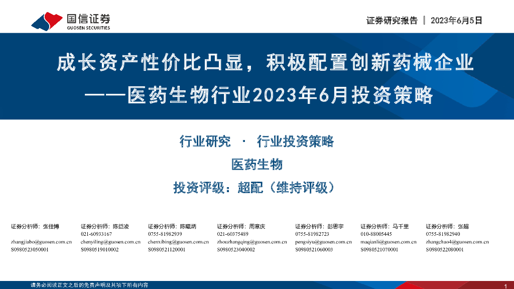 国信证券:医药生物行业2023年6月投资策略:成长资产性价比凸显,积极配置创新药械企业.pdf