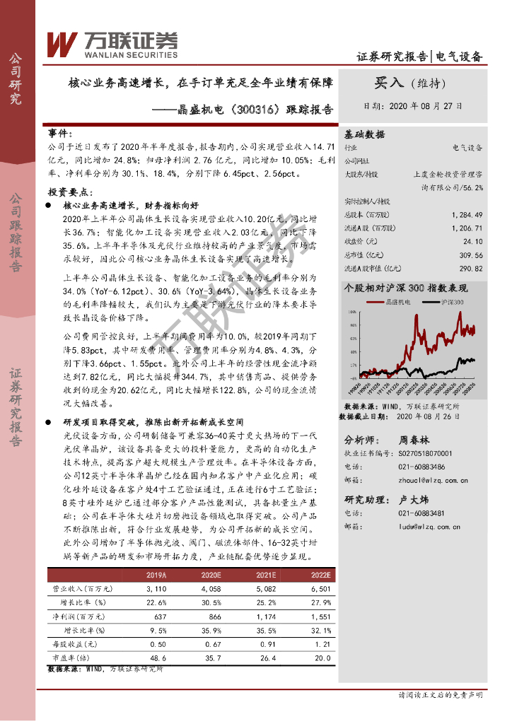 万联证券:晶盛机电(300316)-跟踪报告:核心业务高速增长,在手订单充足全年业绩有保障.pdf