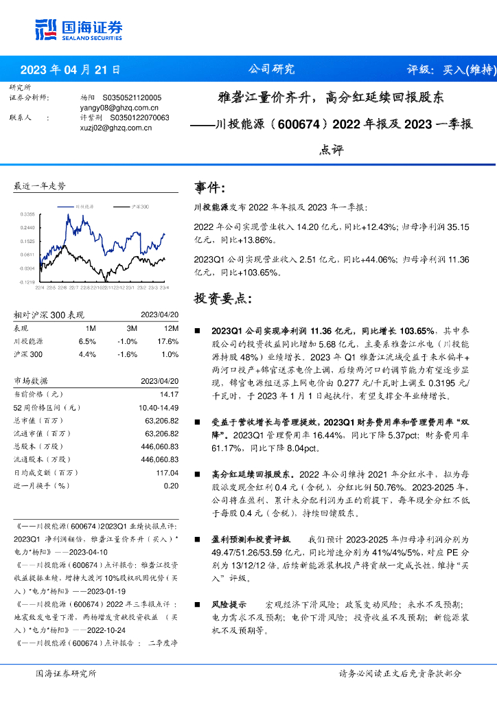 国海证券:川投能源(600674)-2022年报及2023一季报点评:雅砻江量价齐升,高分红延续回报股东.pdf