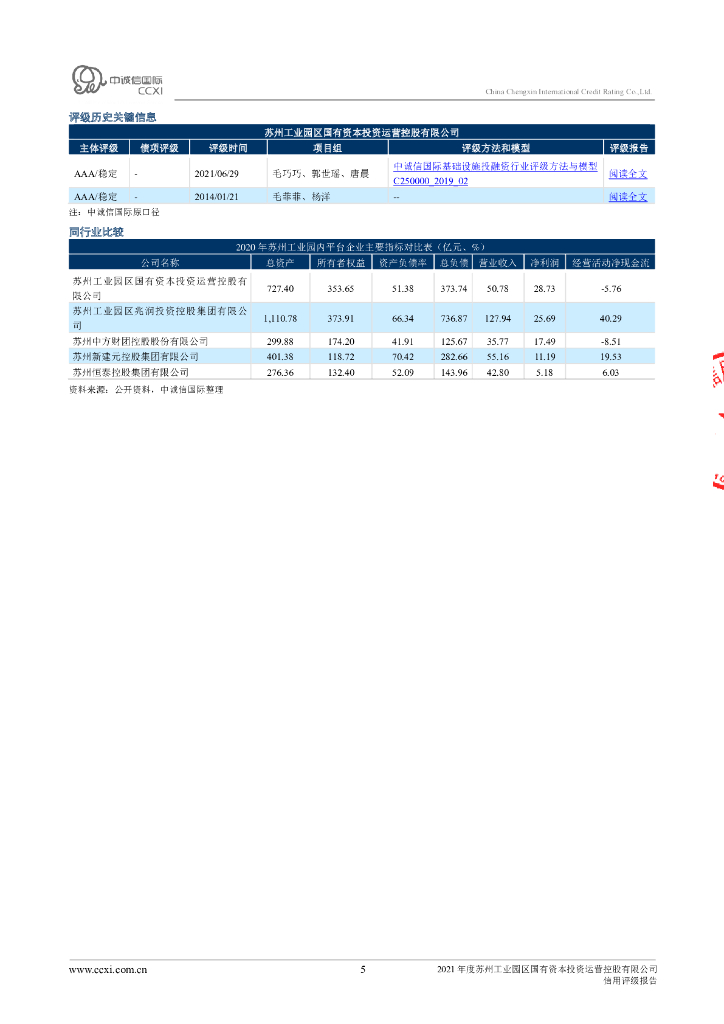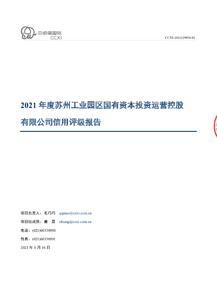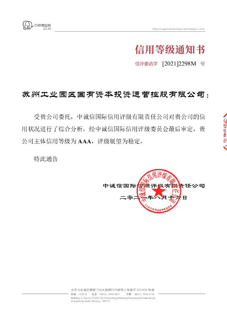 中诚信:苏州工业园区国有资本投资运营控股有限公司2021年度主体信用评级报告.pdf