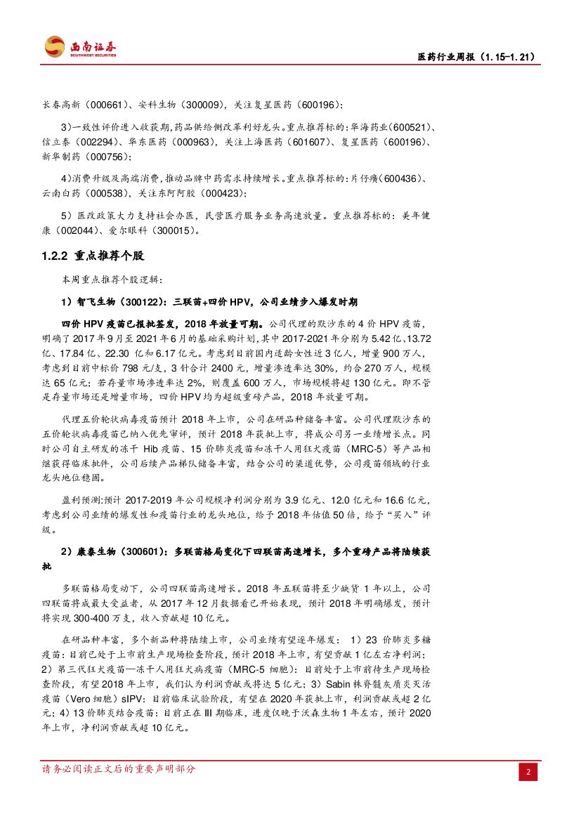 西南证券:医药行业周报:持续看好疫苗、创新药、消费升级标的重点推荐智飞生物、片仔癀及恒瑞医药等.pdf