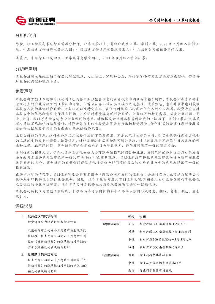 首创证券:老板电器(002508)-公司简评报告:2022年经营韧性较强,23Q1表现优异.pdf