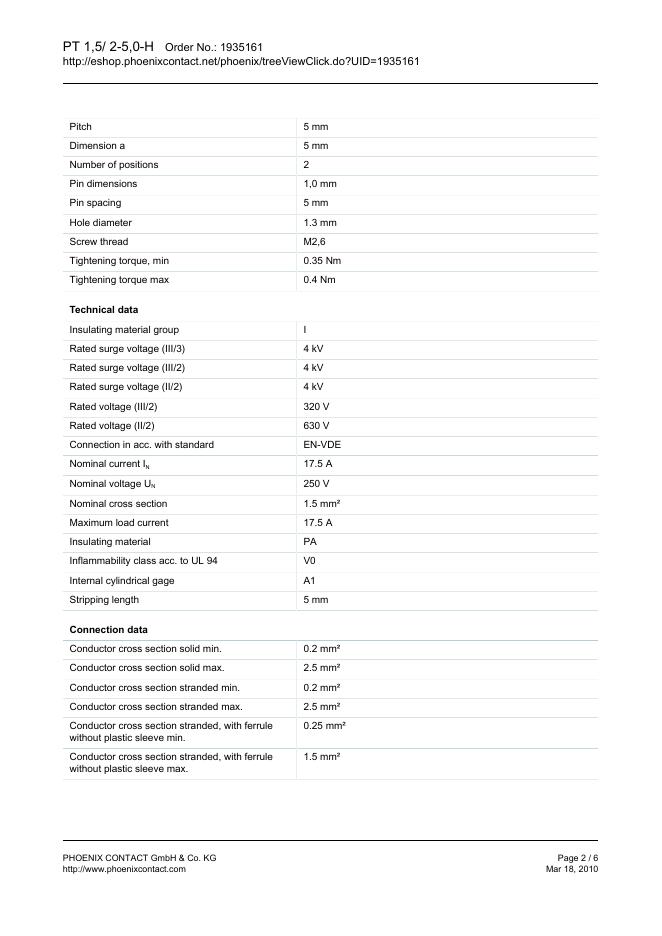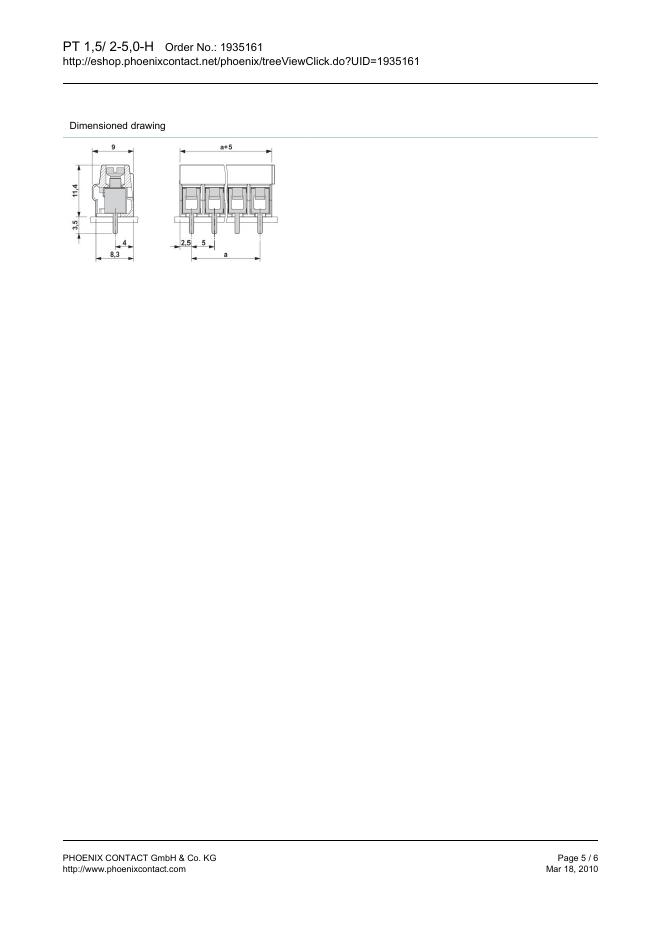 PHOENIX CONTACT PT 1,5/ 2-5,0-H Order No.: 1935161 The figure shows a 10-position version of the product 数据手册.pdf