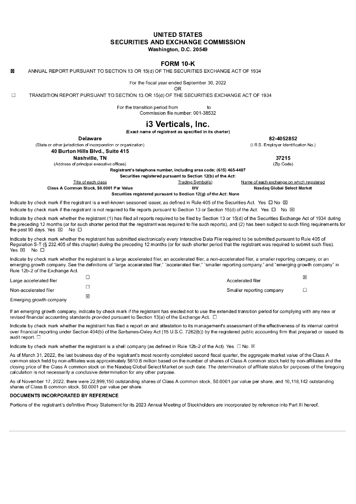 i3 Verticals, Inc.(IIIV)2022财年年度报告(英文版).pdf