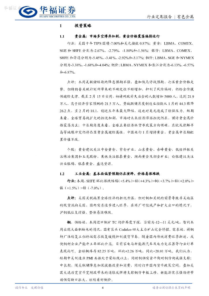 华福证券:有色金属行业定期报告:宏观政策不确定性加大,给金价提供避险支撑.pdf