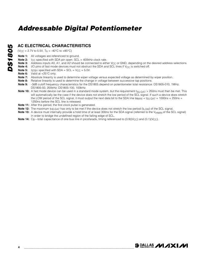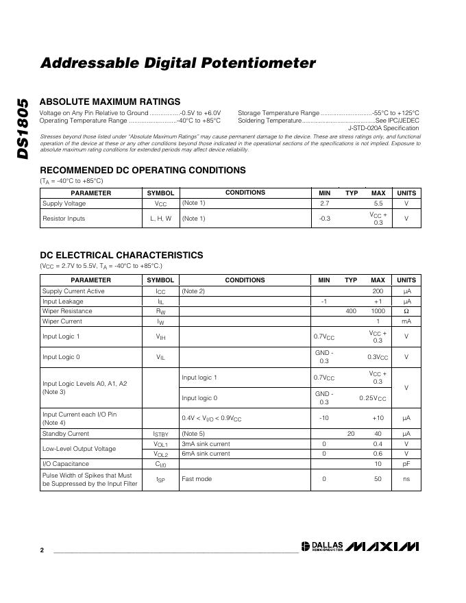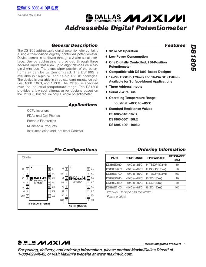 MAXIM DS1805 Addressable Digital Potentiometer 数据手册.pdf