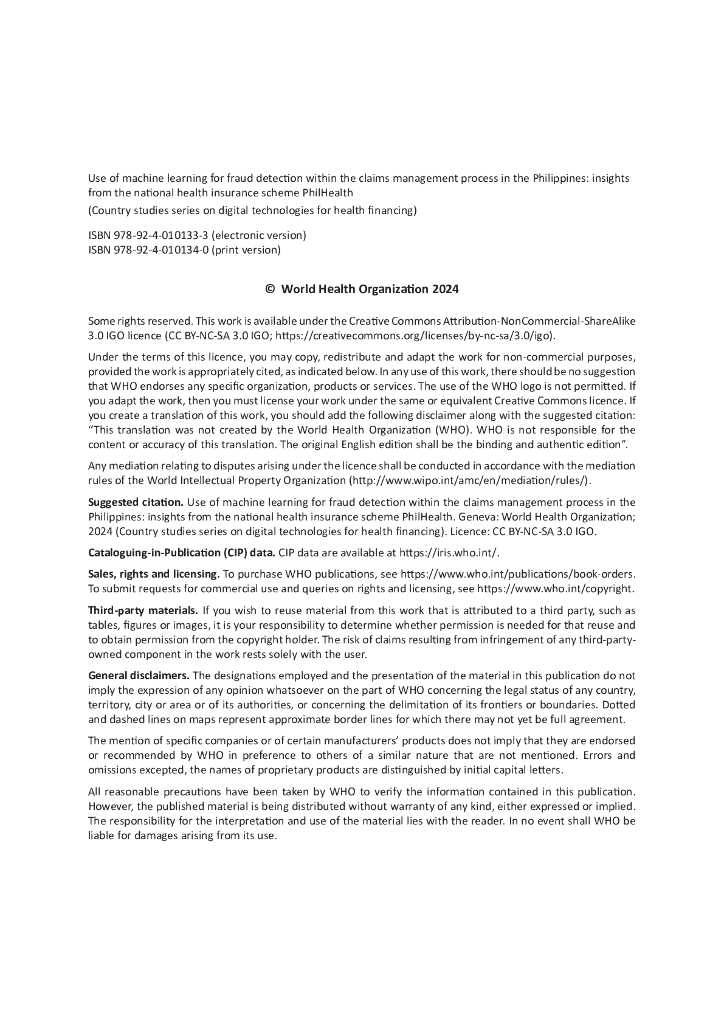 WHO世界卫生组织:2024年利用机器学习在菲律宾的索偿管理过程中发现欺诈行为-国家健康保险计划的意见报告(英文版).pdf