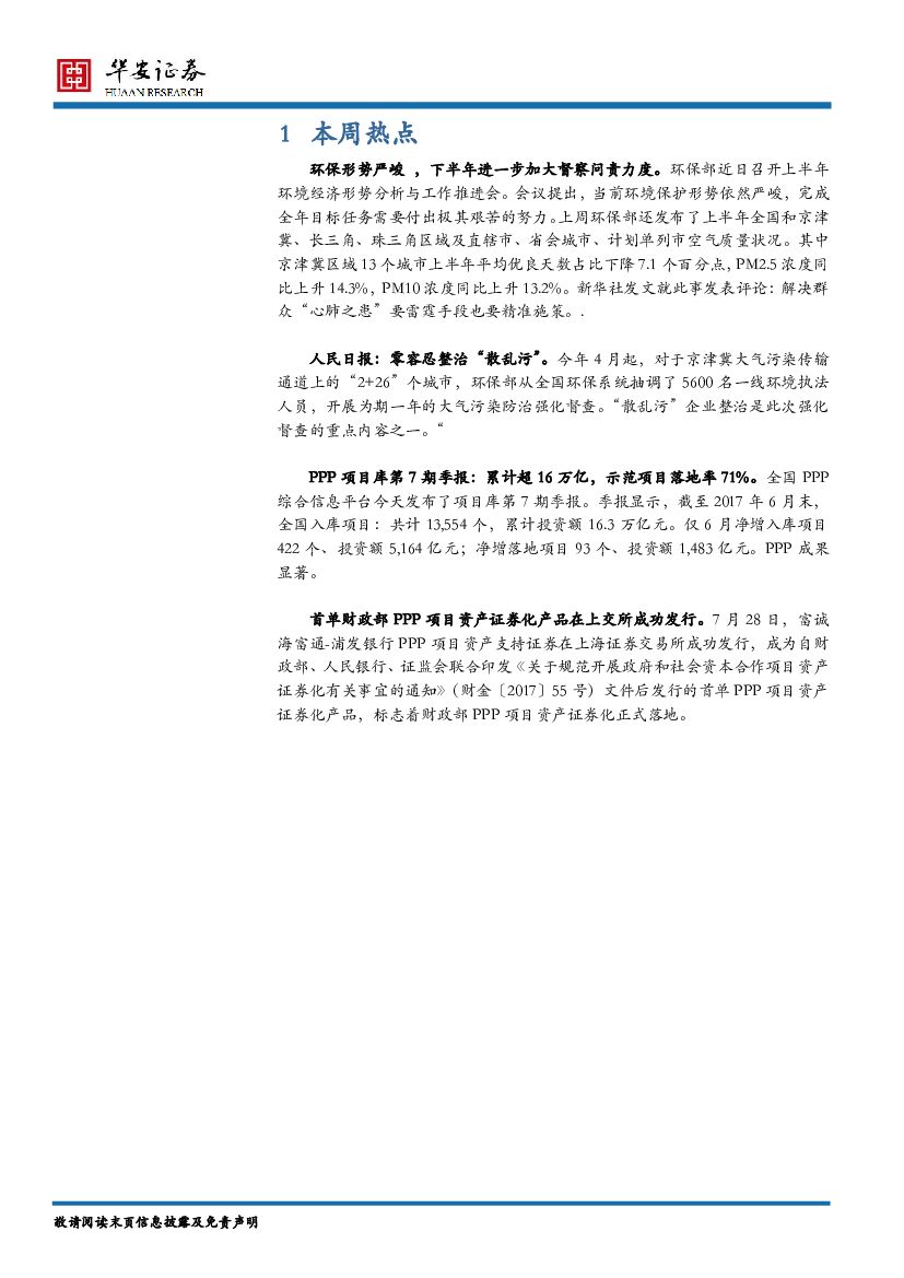 华安证券:环保行业每周报告:督察风暴延续,PPP政策持续发力.pdf