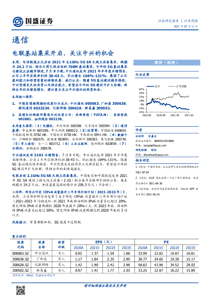 国盛证券:通信行业周报:电联基站集采开启,关注中兴的机会.pdf