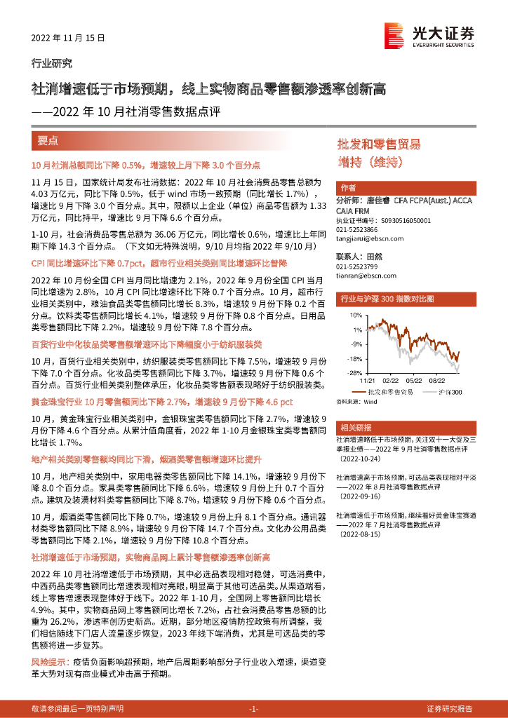光大证券:2022年10月社消零售数据点评:社消增速低于市场预期,线上实物商品零售额渗透率创新高.pdf