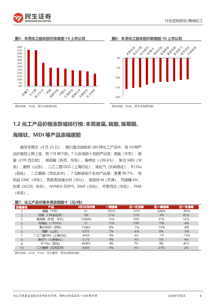 民生证券:化工行业周报:本周液氯、硫酸、烯草酮、海绵钛、MDI等产品涨幅居前.pdf