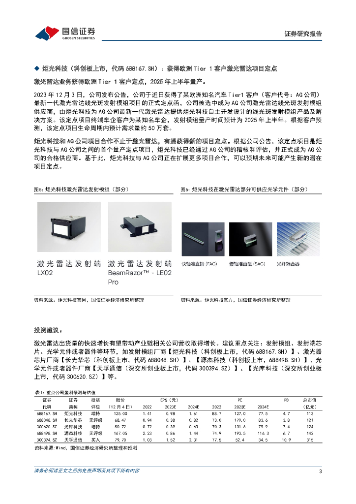 国信证券:激光雷达行业点评:车型增加带动需求放量,供应链公司取得明确进展.pdf
