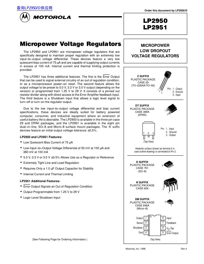 MOTOROLA LP2950/LP2951 数据手册.pdf