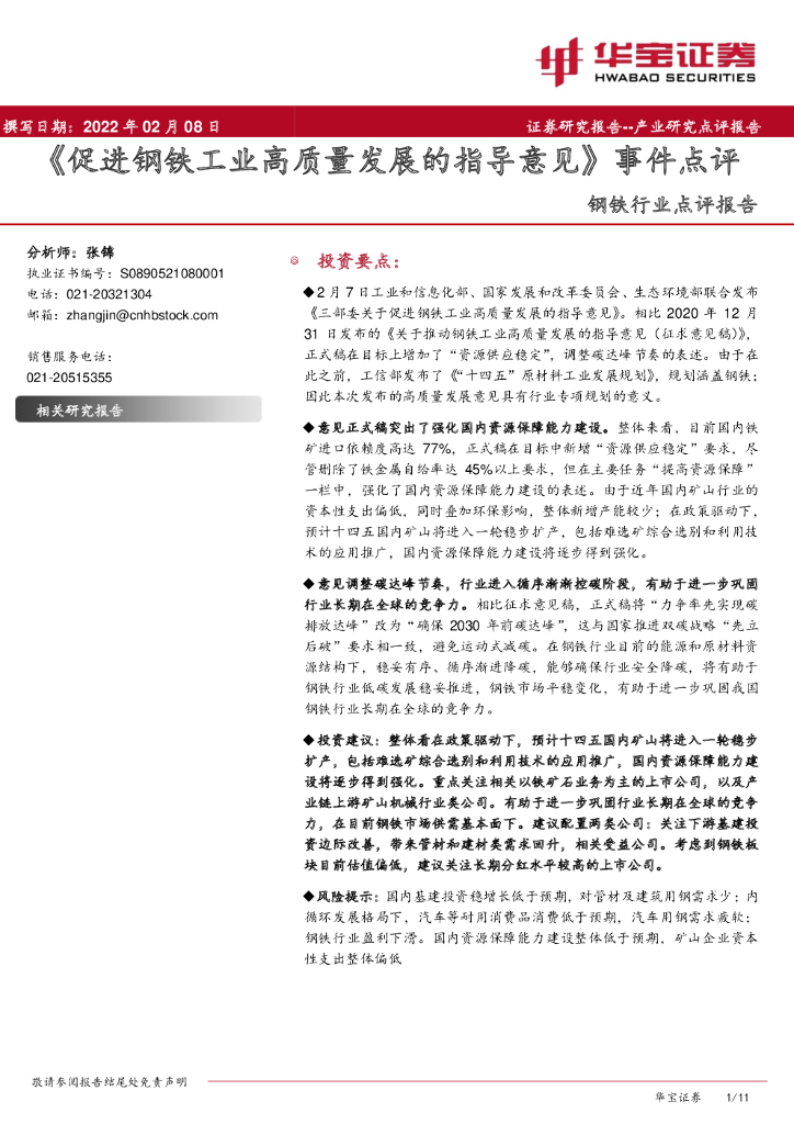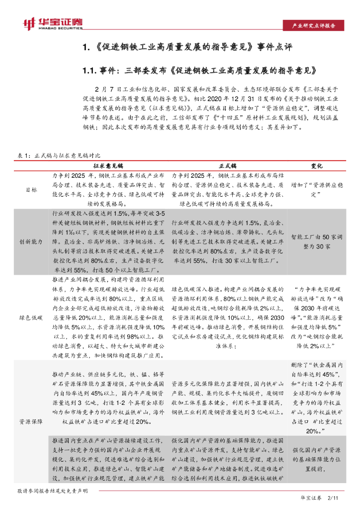 华宝证券:钢铁行业点评报告:《促进钢铁工业高质量发展的指导意见》事件点评.pdf