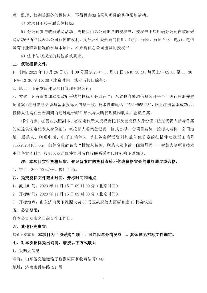 智慧交通-山东省交通运输智慧大脑(一期)——技术中台招标文件.pdf