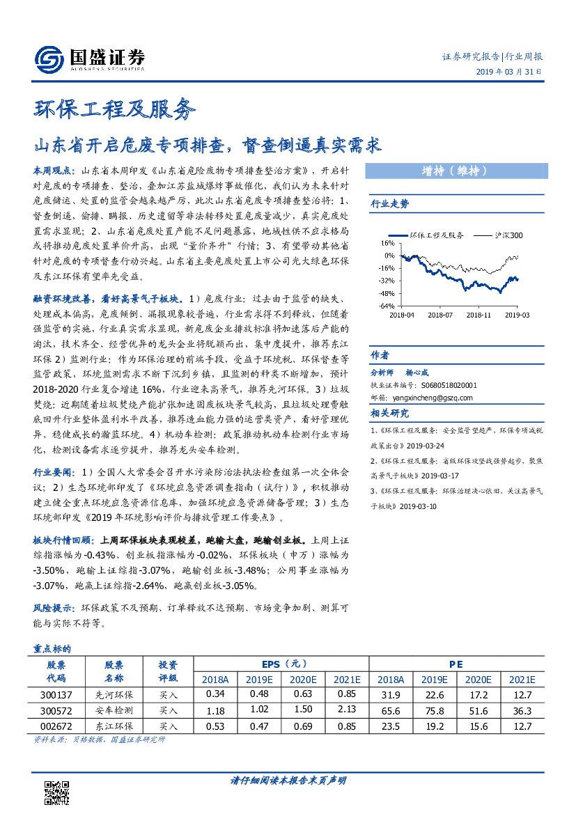 国盛证券:环保工程及服务行业周报:山东省开启危废专项排查,督查倒逼真实需求.pdf
