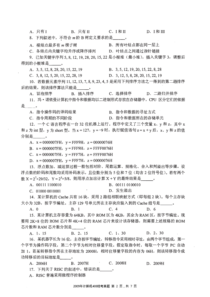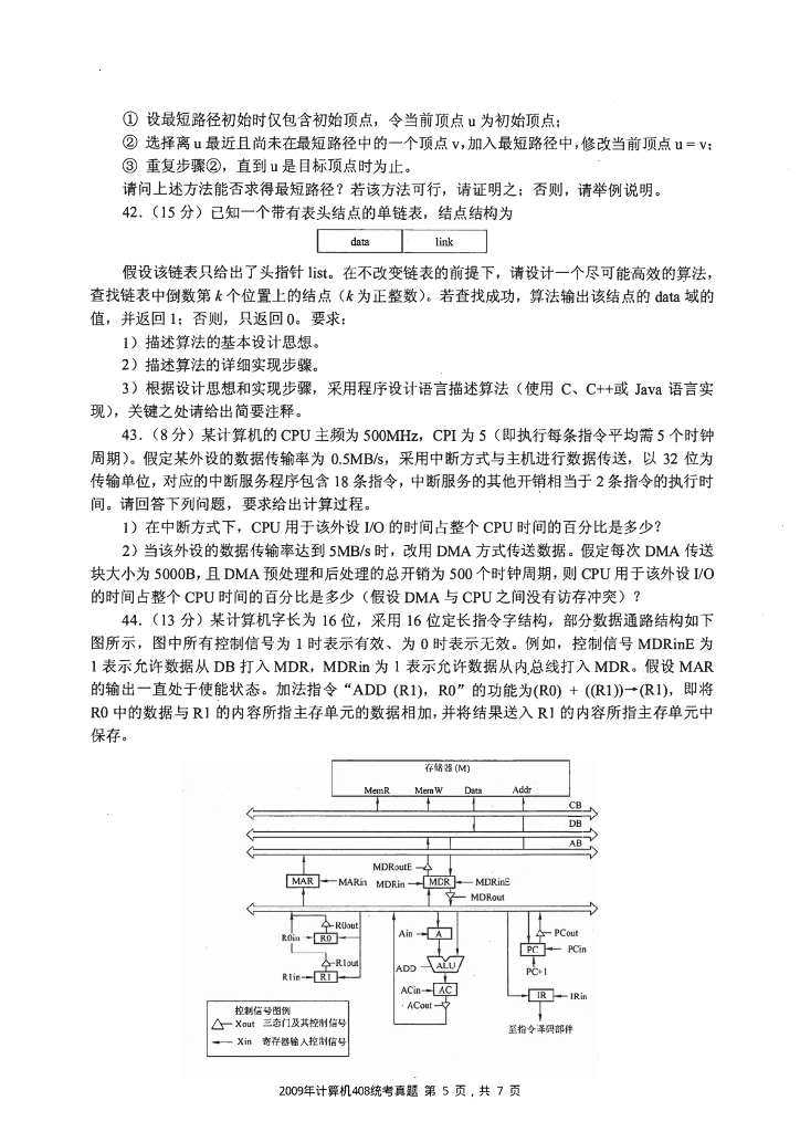 2009年全国硕士研究生入学统一考试计算机科学与技术学科联考计算机学科专业408基础综合试题+解析.pdf