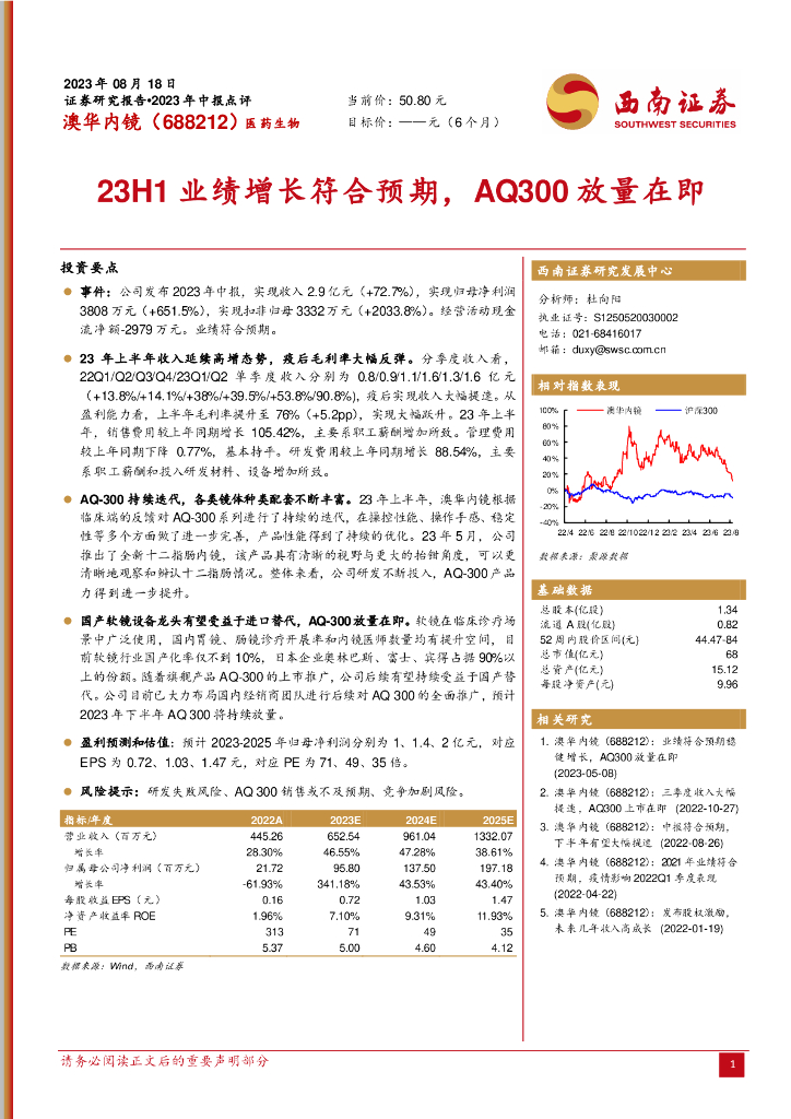 西南证券:澳华内镜(688212)-23H1业绩增长符合预期,AQ300放量在即.pdf