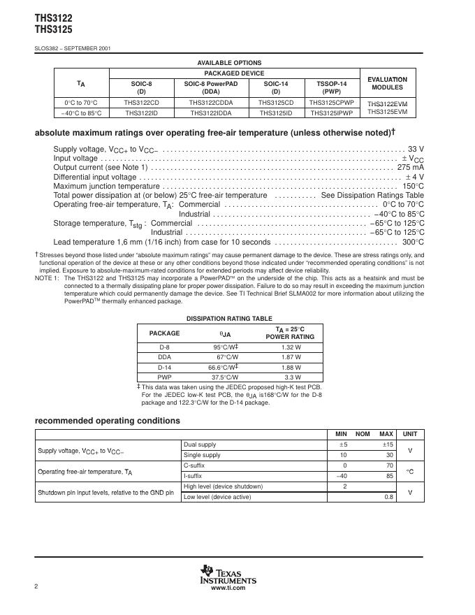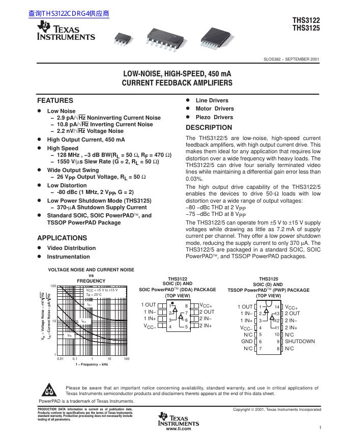 TEXAS INSTRUMENTS THS3122, THS3125 数据手册.pdf